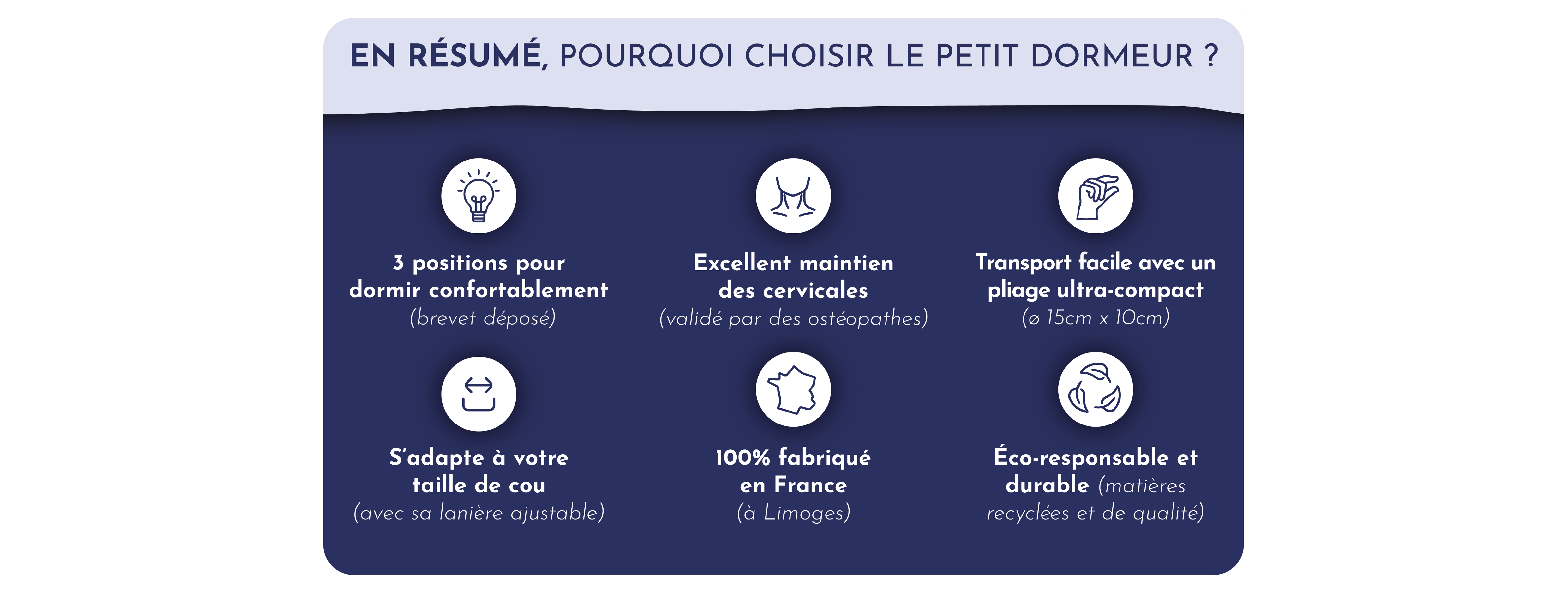 - Ergonomique, il est le seul coussin de voyage à maintenir parfaitement votre tête pour un maximum de confort (déjà plus de 5000 clients convaincus)